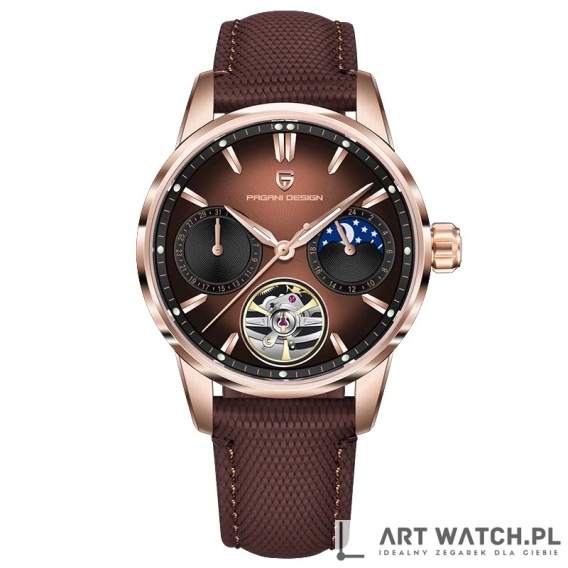 Zegarek automatyczny Pagani Design YS021 Brązowy 10 Bar Szafir